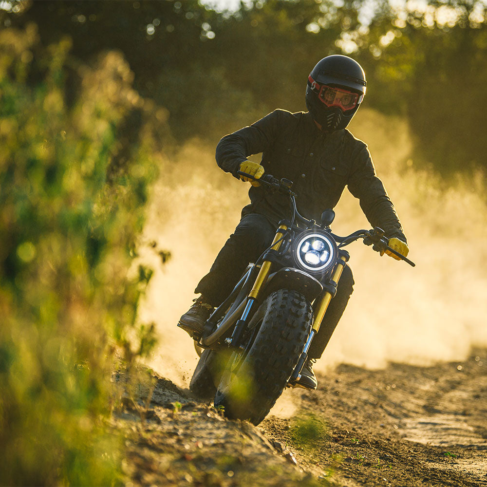 La Volcon Grunt es una moto de dos ruedas fácil de manejar que te da la libertad de conducir en cualquier lugar: por senderos de montaña, para ir al trabajo o para enfrentarte a los terrenos y condiciones más difíciles.